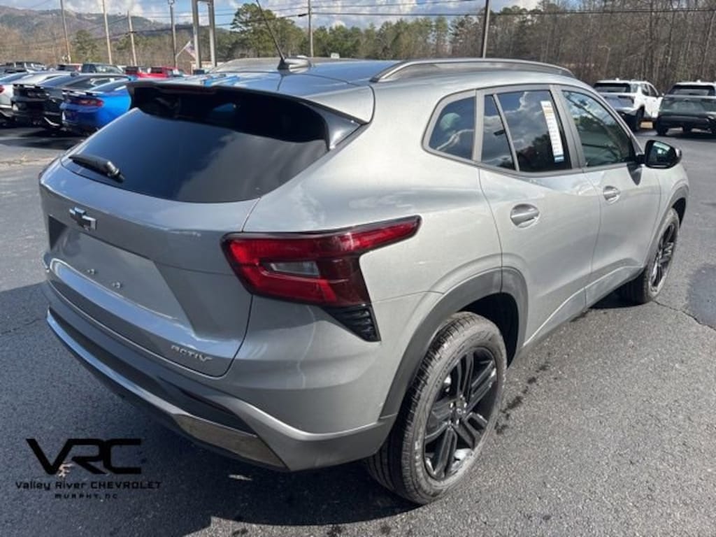 Sterling Gray Metallic 2025 Chevrolet Trax ACTIV FWD 6-Speed Automatic 1.2L Ecotec Turbo DOHC DI w/VVT 2-Way Adjustable Front Head Restraints, 2-Way Power Driver Lumbar Seat Adjuster, 3.50 Final Drive Axle Ratio, 4-Way Manual Front Passenger Seat Adjuster, 4-Wheel Disc Brakes, 6 Speakers, 6-Speaker Audio System Feature, 8-Way Power Driver Seat Adjuster, ABS brakes, Air Conditioning, Alloy wheels, AM/FM radio: SiriusXM, Auto High-beam Headlights, Automatic temperature control, Brake assist, Bumpers: body-color, Compass, Delay-off headlights, Driver door bin, Driver vanity mirror, Dual front impact airbags, Dual front side impact airbags, Electronic Stability Control, Emergency communication system: OnStar One Essentials, Evotex Seat Trim, Exterior Parking Camera Rear, Front anti-roll bar, Front Bucket Seats, Front Center Armrest, Front reading lights, Front wheel independent suspension, Fully automatic headlights, Heated door mirrors, Heated Driver & Front Passenger Seats, Heated front seats, Heated steering wheel, Illuminated entry, Leather steering wheel, License Plate Front Mounting Package, Low tire pressure warning, Occupant sensing airbag, Outside temperature display, Overhead airbag, Overhead console, Panic alarm, Passenger door bin, Passenger vanity mirror, Power door mirrors, Power driver seat, Power steering, Power windows, Preferred Equipment Group 1SA, Premium audio system: Chevrolet Infotainment 3, Radio data system, Radio: AM/FM Stereo Audio System, Rear window defroster, Rear window wiper, Remote keyless entry, Security system, SiriusXM Trial Subscription, Speed control, Split folding rear seat, Spoiler, Steering wheel mounted audio controls, Tachometer, Telescoping steering wheel, Tilt steering wheel, Traction control, Trip computer, Variably intermittent wipers, Wheels: 18 Black-Painted Aluminum.
