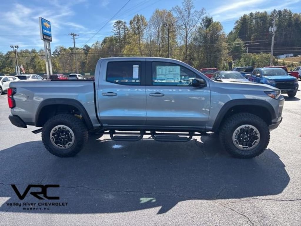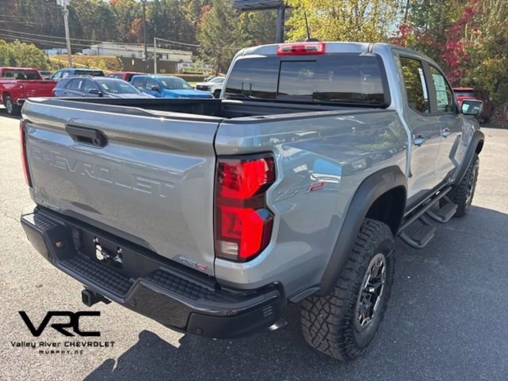 Sterling Gray Metallic 2026 Chevrolet Colorado ZR2 4WD 8-Speed Automatic 2.7L I4 Turbocharged DOHC 16V LEV3-ULEV50 310hp 4WD, 1st & 2nd Row All-Weather Floor Liner (LPO), 3.42 Rear Axle Ratio, 4-Way Manual Passenger Seat Adjuster, 4-Wheel Disc Brakes, 6 Speakers, 6-Speaker Audio System Feature, 8-Way Power Driver Seat Adjuster, ABS brakes, Adaptive Cruise Control, Air Conditioning, Alloy wheels, AM/FM radio: SiriusXM with 360L, Apple CarPlay/Android Auto, Auto High-beam Headlights, Auto-dimming Rear-View mirror, Automatic Emergency Braking, Automatic temperature control, Bose Premium 7-Speaker Audio System Feature, Brake assist, Chevy Safety Assist, Compass, Delay-off headlights, Driver & Front Passenger Heated Seats, Driver & Front Passenger Ventilated Seats, Driver door bin, Driver Memory Settings, Driver Seatback Map Pocket, Driver vanity mirror, Dual front impact airbags, Dual front side impact airbags, Electronic Stability Control, Emergency communication system: OnStar, Following Distance Indicator, Forward Collision Alert, Front anti-roll bar, Front Bucket Seats, Front Center Armrest, Front dual zone A/C, Front fog lights, Front License Plate Kit, Front Passenger Seatback Map Pocket, Front Pedestrian & Bicyclist Braking, Front reading lights, Front wheel independent suspension, HD Surround Vision, Heated door mirrors, Heated front seats, Heated steering wheel, Illuminated entry, IntelliBeam Automatic High Beam On/Off, Lane Keep Assist w/Lane Departure Warning, Low tire pressure warning, Memory seat, Navigation System, Occupant sensing airbag, Outside temperature display, Overhead airbag, Overhead console, Panic alarm, Passenger door bin, Passenger vanity mirror, Perforated Leather-Appointed Seat Trim, Power door mirrors, Power Driver Lumbar Control Seat Adjuster, Power driver seat, Power steering, Power windows, Preferred Equipment Group 4ZR, Radio data system, Radio: 11.3 Diagonal Advanced Color LCD Display, Rear Pedestrian Alert, Rear reading lights, Rear seat center armrest, Rear step bumper, Rear window defroster, Remote keyless entry, Removable Front & Rear Off-Road Assist Steps (LPO), Security system, SiriusXM w/360L Trial Subscription, Speed control, Speed-sensing steering, Split folding rear seat, Steering Wheel Mounted Audio Controls, Steering wheel mounted audio controls, Tachometer, Technology Package, Telescoping steering wheel, Tilt steering wheel, Traction control, Trip computer, Variably intermittent wipers, Ventilated front seats, Wheels: 17 Beadlock Capable (LPO), Wheels: 17 x 8 Graphite & Oxide Gold Aluminum, Wheels: 17 x 8 Steel Transit, Wireless Phone Projection, ZR2 Off-Road Package.