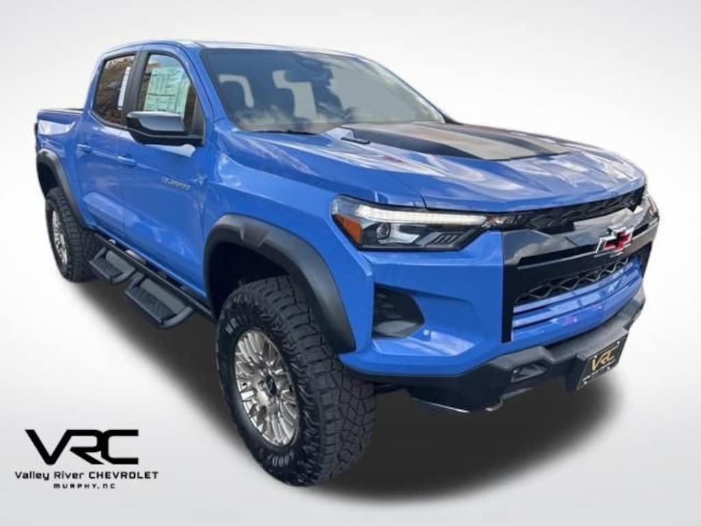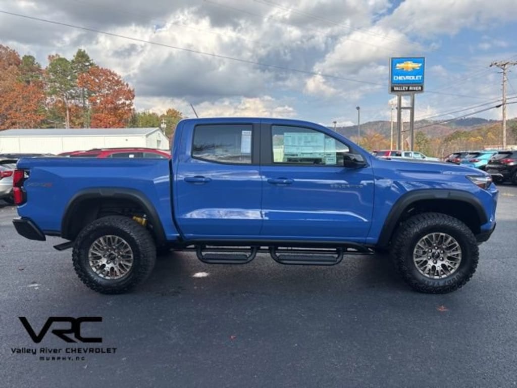 Reef Blue Metallic 2026 Chevrolet Colorado ZR2 4WD 8-Speed Automatic 2.7L I4 Turbocharged DOHC 16V LEV3-ULEV50 310hp 4WD, 3.42 Rear Axle Ratio, 4-Way Manual Passenger Seat Adjuster, 4-Wheel Disc Brakes, 6 Speakers, 6-Speaker Audio System Feature, 8-Way Power Driver Seat Adjuster, ABS brakes, Adaptive Cruise Control, Air Conditioning, Alloy wheels, AM/FM radio: SiriusXM with 360L, Apple CarPlay/Android Auto, Auto High-beam Headlights, Auto-dimming Rear-View mirror, Automatic Emergency Braking, Automatic temperature control, Bose Premium 7-Speaker Audio System Feature, Brake assist, Chevy Safety Assist, Compass, Delay-off headlights, Driver & Front Passenger Heated Seats, Driver & Front Passenger Ventilated Seats, Driver door bin, Driver Memory Settings, Driver Seatback Map Pocket, Driver vanity mirror, Dual front impact airbags, Dual front side impact airbags, Electronic Stability Control, Emergency communication system: OnStar, Following Distance Indicator, Forward Collision Alert, Front anti-roll bar, Front Bucket Seats, Front Center Armrest, Front dual zone A/C, Front fog lights, Front License Plate Kit, Front Passenger Seatback Map Pocket, Front Pedestrian & Bicyclist Braking, Front reading lights, Front wheel independent suspension, HD Surround Vision, Heated door mirrors, Heated front seats, Heated steering wheel, Illuminated entry, IntelliBeam Automatic High Beam On/Off, Lane Keep Assist w/Lane Departure Warning, Low tire pressure warning, Memory seat, Navigation System, Occupant sensing airbag, Outside temperature display, Overhead airbag, Overhead console, Panic alarm, Passenger door bin, Passenger vanity mirror, Perforated Leather-Appointed Seat Trim, Power door mirrors, Power Driver Lumbar Control Seat Adjuster, Power driver seat, Power steering, Power windows, Preferred Equipment Group 4ZR, Radio data system, Radio: 11.3 Diagonal Advanced Color LCD Display, Rear Pedestrian Alert, Rear reading lights, Rear seat center armrest, Rear step bumper, Rear window defroster, Remote keyless entry, Removable Front & Rear Off-Road Assist Steps (LPO), Security system, SiriusXM w/360L Trial Subscription, Speed control, Speed-sensing steering, Split folding rear seat, Steering Wheel Mounted Audio Controls, Steering wheel mounted audio controls, Tachometer, Tech Bronze Recovery Hooks (LPO), Technology Package, Telescoping steering wheel, Tilt steering wheel, Traction control, Trip computer, Variably intermittent wipers, Ventilated front seats, Wheels: 17 Alum Multi-Spoke in Tech Bronze (LPO), Wheels: 17 x 8 Graphite & Oxide Gold Aluminum, Wheels: 17 x 8 Steel Transit, Wireless Phone Projection, ZR2 Off-Road Package.