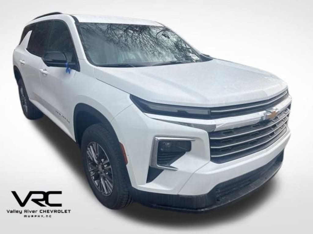 Summit White 2026 Chevrolet Traverse LT 1LT FWD 8-Speed Automatic 2.5L DOHC 1st and 2nd Row All-Weather Floor Liners, 3rd Row All-Weather Floor Liner, 3rd row seats: split-bench, 4-Way Manual Front Passenger Seat Adjuster, 4-Wheel Disc Brakes, 6 Speakers, 6-Speaker Audio System Feature, 8-Way Power Driver Seat Adjuster, ABS brakes, Air Conditioning, Alloy wheels, AM/FM radio: SiriusXM with 360L, Apple CarPlay/Android Auto, Auto High-beam Headlights, Automatic temperature control, Brake assist, Bumpers: body-color, Cargo Package, Cargo Shade, Cargo Tray with Divider, Child-Seat-Sensing Airbag, Compass, Delay-off headlights, Driver Confidence Package, Driver door bin, Driver vanity mirror, Dual front impact airbags, Dual front side impact airbags, Electronic Stability Control, Emergency communication system: OnStar, Floor Liner Package, Four wheel independent suspension, Front anti-roll bar, Front Bucket Seats, Front Center Armrest, Front dual zone A/C, Front reading lights, Fully automatic headlights, HD Surround Vision, Heated door mirrors, Heated Driver and Front Passenger Seats, Heated front seats, Heated steering wheel, Illuminated entry, Integrated Cargo Liner, Key Card, Low tire pressure warning, Molded Splash Guards, Navigation System, Occupant sensing airbag, Outside temperature display, Overhead airbag, Overhead console, Panic alarm, Passenger door bin, Passenger vanity mirror, Power door mirrors, Power driver seat, Power Liftgate, Power Outlet, Power steering, Power windows, Preferred Equipment Group 1LT, Premium Cloth Seat Trim, Radio data system, Radio: : Audio System w/17.7 Diagonal Display, Rear air conditioning, Rear anti-roll bar, Rear Camera Mirror, Rear Pedestrian Alert, Rear reading lights, Rear window defroster, Rear window wiper, Remote keyless entry, Security system, SiriusXM with 360L Trial Subscription, Speed control, Speed-sensing steering, Spoiler, Steering wheel mounted audio controls, Tachometer, Telescoping steering wheel, Tilt steering wheel, Traction control, Traffic Sign Recognition, Trip computer, Turn signal indicator mirrors, Variably intermittent wipers, Vertical Cargo Net, Voltmeter, Wheels: 18 Grazen Metallic Machined-Face Aluminum.