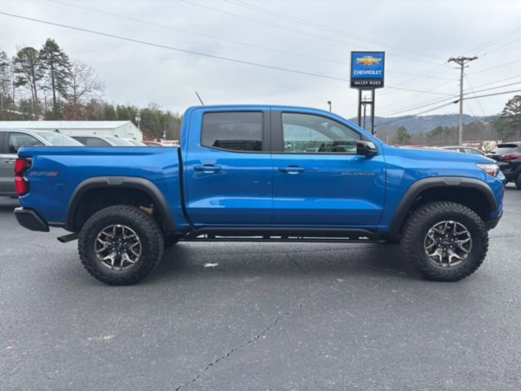 Glacier Blue Metallic 2024 Chevrolet Colorado ZR2 4WD 8-Speed Automatic 2.7L I4 Turbocharged DOHC 16V LEV3-ULEV50 310hp 4WD, 3.42 Rear Axle Ratio, 4-Way Manual Passenger Seat Adjuster, 4-Wheel Disc Brakes, 6 Speakers, 6-Speaker Audio System Feature, 8-Way Power Driver Seat Adjuster, ABS brakes, Air Conditioning, All-Weather Floor Mats, Alloy wheels, AM/FM radio: SiriusXM, Apple CarPlay/Android Auto, Auto High-beam Headlights, Auto-dimming Rear-View mirror, Automatic Emergency Braking, Automatic temperature control, Brake assist, Chevy Safety Assist, Cloth/Evotex Seat Trim, Compass, Delay-off headlights, Driver door bin, Driver vanity mirror, Dual front impact airbags, Dual front side impact airbags, Electronic Automatic Cruise Control, Electronic Stability Control, Following Distance Indicator, Forward Collision Alert, Front anti-roll bar, Front Bucket Seats, Front Center Armrest, Front dual zone A/C, Front fog lights, Front Passenger Seatback Map Pocket, Front Pedestrian & Bicyclist Braking, Front reading lights, Front wheel independent suspension, Heated door mirrors, Heated Driver & Front Passenger Seats, Heated front seats, Illuminated entry, IntelliBeam Automatic High Beam On/Off, Lane Keep Assist w/Lane Departure Warning, Low tire pressure warning, Navigation System, Occupant sensing airbag, Outside temperature display, Overhead airbag, Overhead console, Panic alarm, Passenger door bin, Passenger vanity mirror, Power door mirrors, Power Driver Lumbar Control Seat Adjuster, Power driver seat, Power Sliding Glass w/Manual Shade Sunroof, Power steering, Power windows, Preferred Equipment Group 4ZR, Radio data system, Radio: 11.3 Diagonal Advanced Color LCD Display, Rear reading lights, Rear step bumper, Rear window defroster, Rear-Window Electric Defogger, Remote keyless entry, Security system, SiriusXM Radio, Speed control, Speed-sensing steering, Split folding rear seat, Steering Wheel Mounted Audio Controls, Steering wheel mounted audio controls, Tachometer, Telescoping steering wheel, Tilt steering wheel, Traction control, Trip computer, Variably intermittent wipers, Wheels: 17 x 8 Graphite & Oxide Gold Aluminum, Wireless Phone Projection, ZR2 Off-Road Package.