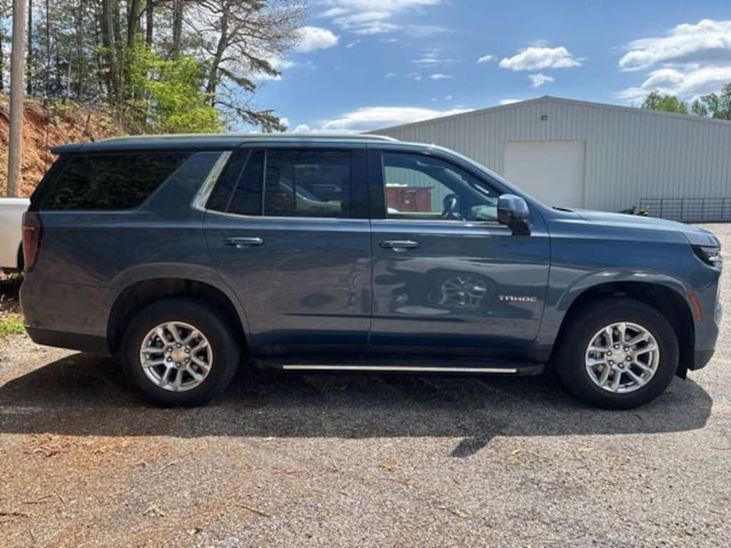 Lakeshore Blue Metallic 2025 Chevrolet Tahoe LT 4WD 10-Speed Automatic with Overdrive EcoTec3 5.3L V8 4WD, Black Leather, 1st and 2nd Row Color-Keyed Carpeted Floor Mats, 2-Way Power Driver Lumbar Seat Adjuster, 2-Way Power Front Passenger Lumbar Seat Adjuster, 3-Spoke Wrapped Steering Wheel, 3.23 Rear Axle Ratio, 3rd Row Manual 60/40 Split-Folding Bench Seats, 3rd row seats: split-bench, 4-Wheel Disc Brakes, 6 Speakers, 6-Speaker Audio System Feature, 8-Way Power Driver Seat Adjuster, 8-Way Power Front Passenger Seat Adjuster, ABS brakes, Air Conditioning, Alloy wheels, AM/FM radio: SiriusXM with 360L, Apple CarPlay/Android Auto, Auto High-beam Headlights, Automatic temperature control, Brake assist, Bumpers: body-color, Color-Keyed Carpeting Floor Covering, Compass, Delay-off headlights, Driver door bin, Driver vanity mirror, Dual front impact airbags, Dual front side impact airbags, Electronic Stability Control, Emergency communication system: OnStar and Chevrolet connected services capable, Exterior Parking Camera Rear, Floor Console with Storage Area, Four wheel independent suspension, Front anti-roll bar, Front Bucket Seats, Front Center Armrest, Front dual zone A/C, Front Pedestrian and Bicyclist Braking, Front reading lights, Frontal Driver and Outboard Passenger Airbags, Fully automatic headlights, Heated door mirrors, Heated Driver and Front Passenger Seats, Heated front seats, Illuminated entry, Leather-Appointed Seat Trim, Low tire pressure warning, Memory seat, Memory Settings For Driver, Navigation system: Google built-in compatibility (select service plan required, terms and limitations apply), Occupant sensing airbag, Outside temperature display, Overhead airbag, Overhead console, Panic alarm, Passenger door bin, Passenger vanity mirror, Power door mirrors, Power driver seat, Power Liftgate, Power passenger seat, Power steering, Power windows, Preferred Equipment Group 1LT, Premium audio system: Chevrolet Infotainment 3 Premium, Premium Smooth Ride Suspension, Radio data system, Radio: 17.7 Diagonal Advanced Color LCD Display, Rain sensing wipers, Rear air conditioning, Rear anti-roll bar, Rear Power Liftgate, Rear reading lights, Rear seat center armrest, Rear window defroster, Rear window wiper, Remote keyless entry, Remote Start, Security system, SiriusXM with 360L Trial Subscription, Speed control, Speed-sensing steering, Split folding rear seat, Spoiler, Steering wheel mounted audio controls, Tachometer, Telescoping steering wheel, Tilt steering wheel, Traction control, Trip computer, USB Ports, Variably intermittent wipers, Voltmeter, Wheels: 18 x 8.5 Bright Silver Painted Aluminum, Wireless Phone Charging.