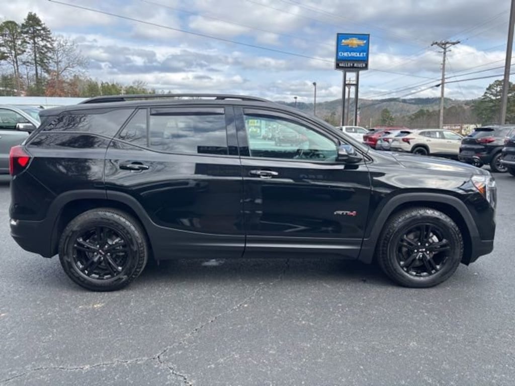 Ebony Twilight Metallic 2024 GMC Terrain AT4 AWD 9-Speed Automatic 1.5L DOHC AWD, 2 USB Data Ports, 2 USB Data Ports w/SD Card Reader, 3.47 Final Drive Axle Ratio, 4-Wheel Disc Brakes, 6 Speakers, 6-Speaker Audio System Feature, 6-Way Power Front Passenger Seat, 8-Way Power Driver Seat Adjuster, ABS brakes, Air Conditioning, Alloy wheels, AM/FM radio: SiriusXM, Auto High-beam Headlights, Auto-dimming Rear-View mirror, Automatic temperature control, Bluetooth® For Phone, Brake assist, Bumpers: body-color, Compass, Delay-off headlights, Driver & Front Passenger Heated Seats, Driver door bin, Driver vanity mirror, Dual front impact airbags, Dual front side impact airbags, Electronic Stability Control, Emergency communication system: OnStar and GMC connected services capable, Four wheel independent suspension, Front & Rear Park Assist, Front anti-roll bar, Front Bucket Seats, Front Center Armrest, Front dual zone A/C, Front fog lights, Front Passenger 2-Way Power Lumbar, Front reading lights, Fully automatic headlights, Garage door transmitter, HD Surround Vision, Head-Up Display, Heated door mirrors, Heated front seats, Heated steering wheel, Illuminated entry, Low tire pressure warning, Memory seat, Navigation system: GMC Connected Navigation, Occupant sensing airbag, Outside temperature display, Overhead airbag, Overhead console, Panic alarm, Passenger door bin, Passenger vanity mirror, Perforated Leather-Appointed Seat Trim w/AT4 Logo, Power door mirrors, Power Driver Lumbar Control, Power driver seat, Power Liftgate, Power passenger seat, Power steering, Power windows, Preferred Equipment Group 4SC, Radio data system, Radio: GMC Infotainment Audio System w/8 Display, Rear anti-roll bar, Rear seat center armrest, Rear window defroster, Rear window wiper, Remote keyless entry, Roof rack: rails only, Security system, SiriusXM, Skyscape Power Sunroof w/Power Sunscreen, Speed control, Speed-sensing steering, Split folding rear seat, Spoiler, Steering wheel mounted audio controls, Tachometer, Tech Package, Telescoping steering wheel, Tilt steering wheel, Traction control, Trip computer, Turn signal indicator mirrors, Variably intermittent wipers, Wheels: 17 x 7 Gloss Black Aluminum, Wireless Apple CarPlay/Wireless Android Auto.